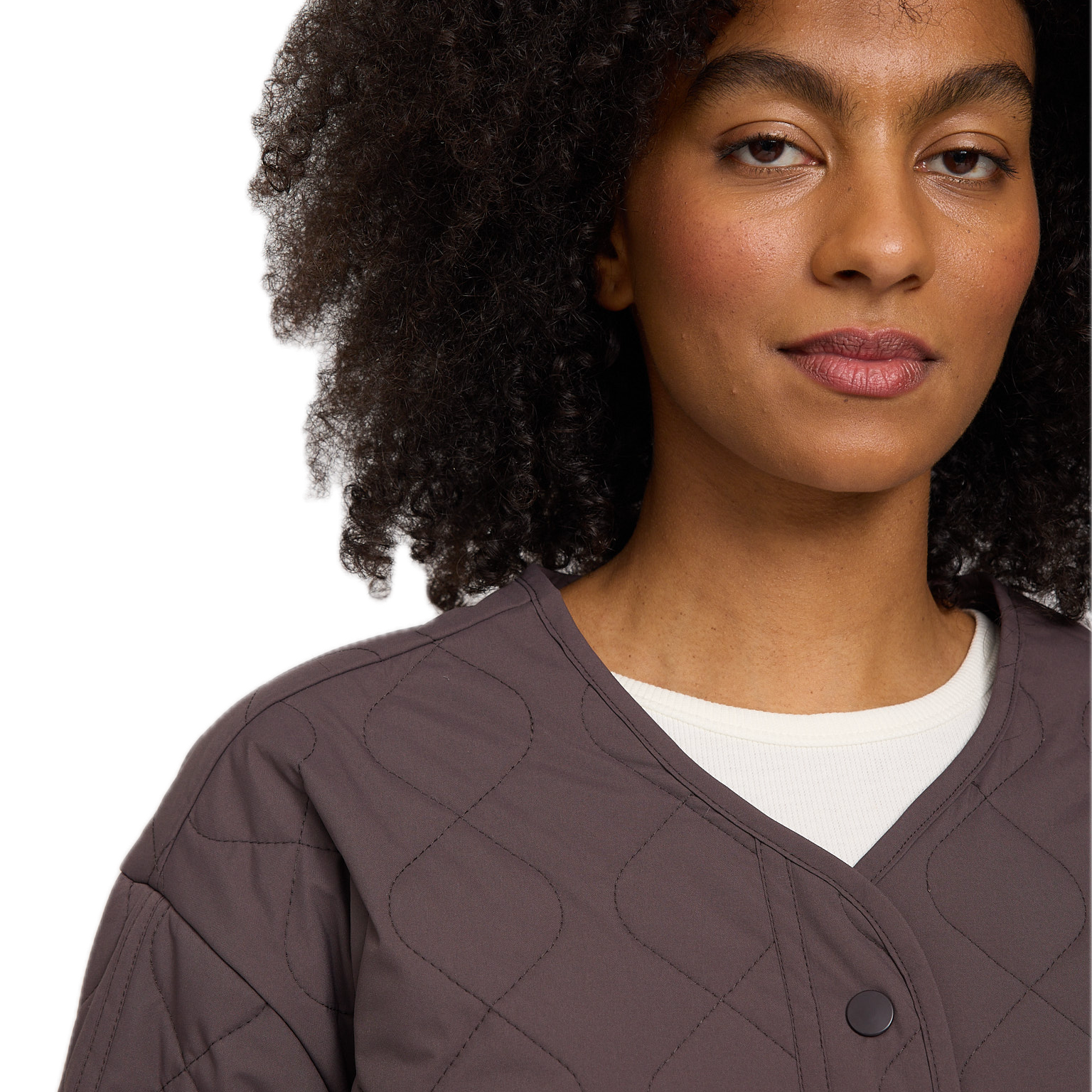 Diese Jacke bietet dank der Füllung aus 100 % recyceltem Polyester eine angenehme Wärmeisolierung. Der besondere Schnitt mit V-Ausschnitt, die matte Oberfläche und der Druckknopfverschluss verleihen ihr eine moderne Optik. Die entspannte Passform und aufgesetzte Taschen unterstreichen den lässigen Stil. Elastische Ärmelabschlüsse halten die Wärme am Körper. Sowohl Oberstoff, Futter als auch Wattierung bestehen aus recyceltem Polyester.