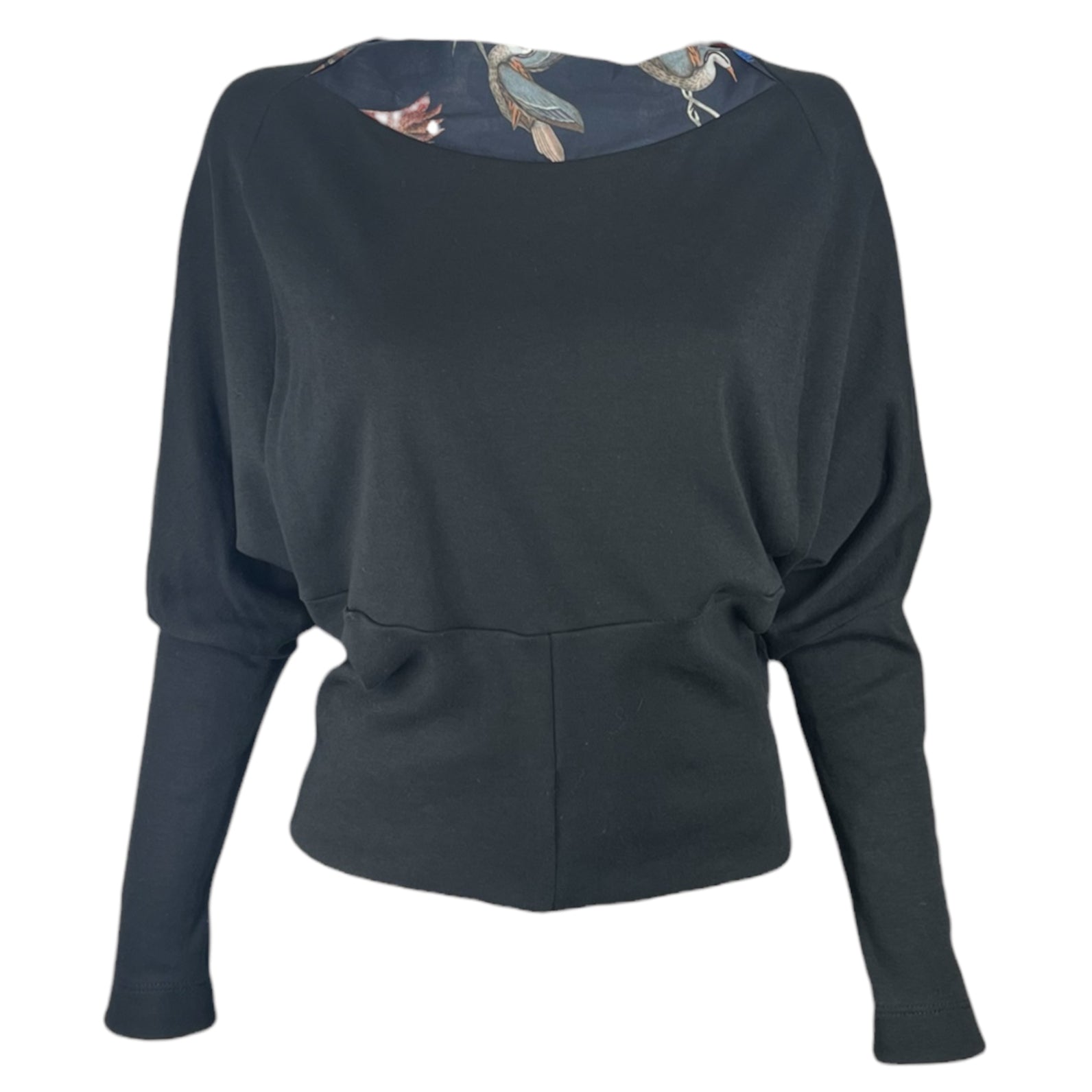 Der Preis - der hat mich erst mal abgeschreckt! Trotzdem blieb ich dran und habe mir das Shirt schließlich geleistet - und es ist ein echtes Schmuckstück! Die Einsätze mit den Vögeln sind aus einem feineren, blusenähnlichen Stoff, der leicht transparent und damit durchaus sexy ist - trotz weitem, bequemem Schnitt.