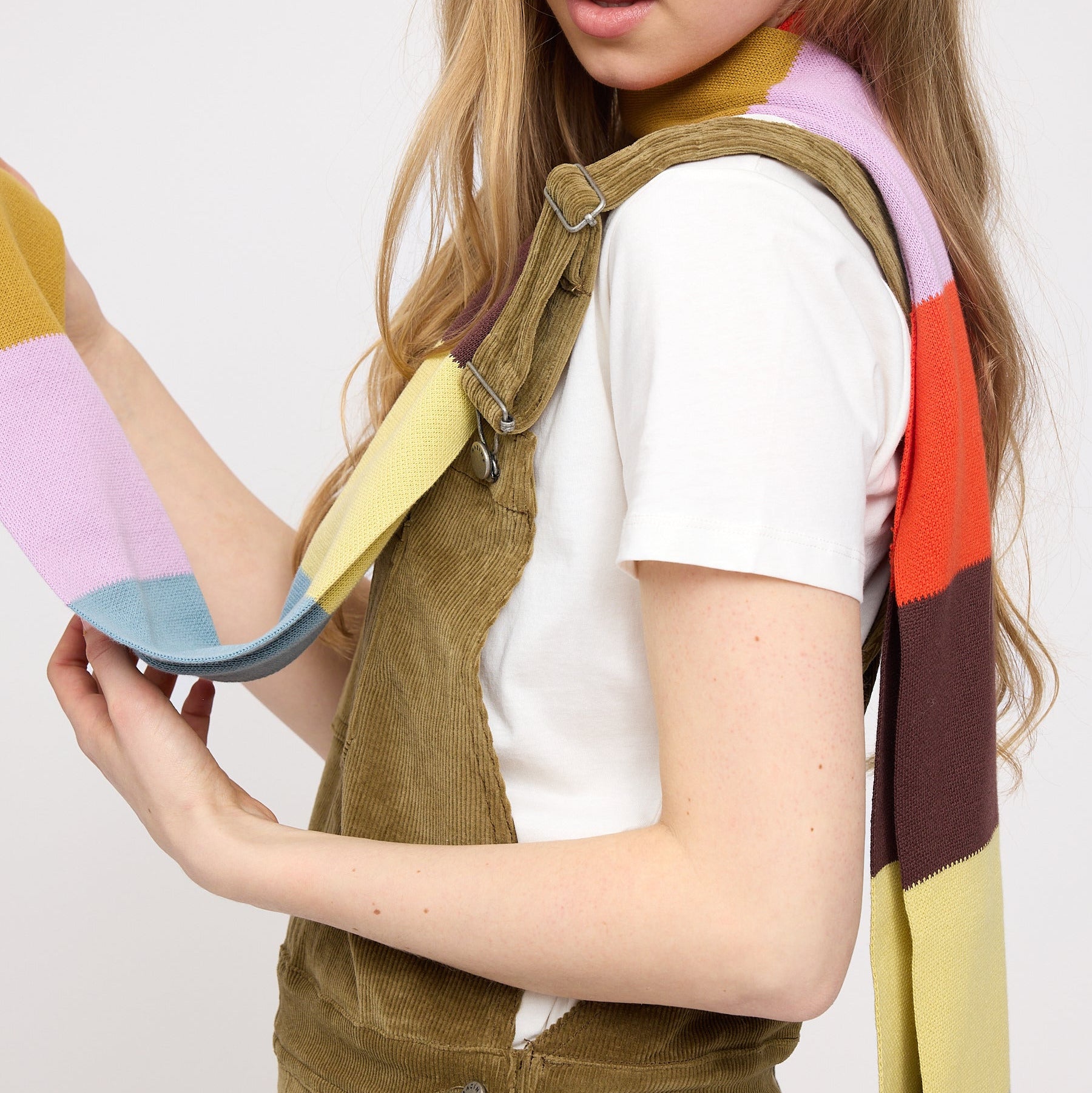 Dieser buntgestreifte Schal im von Mazine besteht aus 100% Bio-Baumwolle.