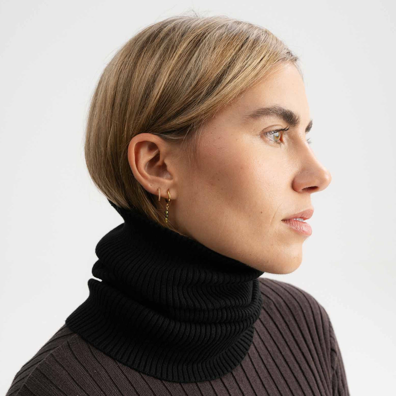 Daiva ist ein kleiner Schal, wie ein Rollkragen aus 100% Bio-Baumwolle. Er ist besonders weich und hautfreundlich, ideal für empfindliche Haut. Das atmungsaktive und temperaturregulierende Material sorgt für optimalen Tragekomfort bei jedem Wetter. Durch das zeitlose Design passen die Accessoires zu jedem Outfit.