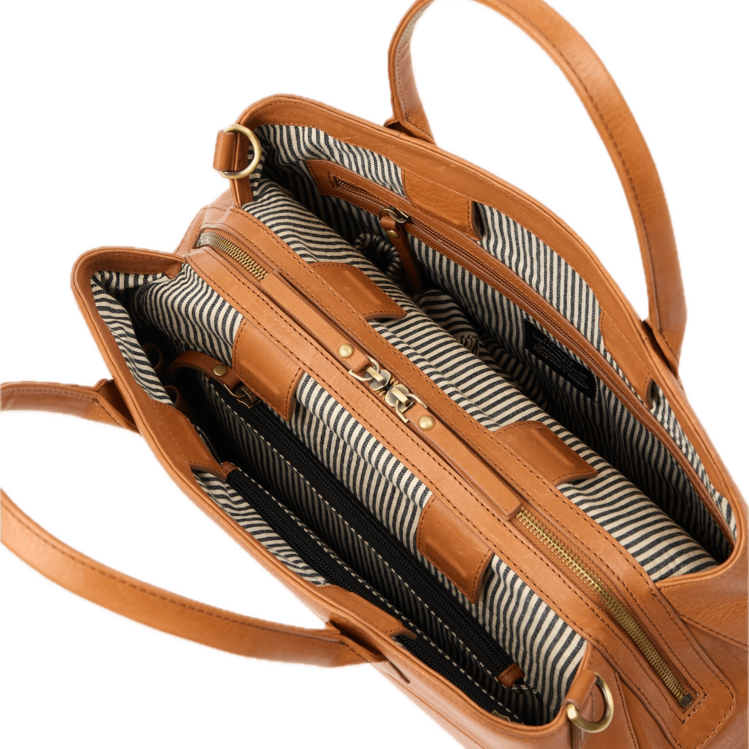 Rita, die perfekte Tasche für einen gut sortierten Arbeitstag. Mit ihrem sachlichen und trotzdem sympatischen eleganten Design und den praktischen Henkeln hat sie im Büro und unterwegs alles im Griff. Rita hat mehrere Fächer mit und ohne Reißverschluss mit ausreichend Platz für Rechner, Blätter, Flasche, Stifte und vieles mehr.