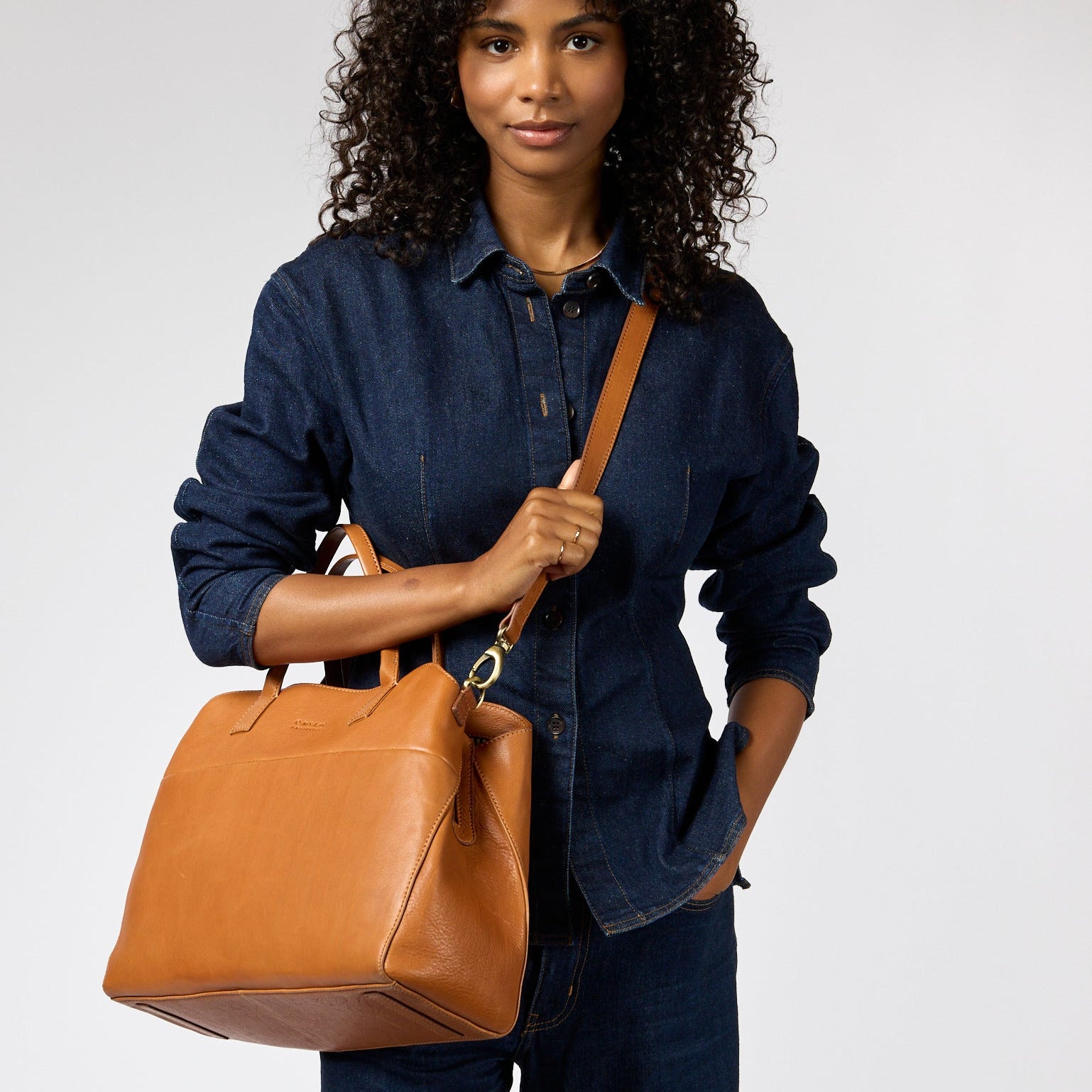 Gefertigt aus luxuriösen Soft Grain Leather, das ohne schädliche Chemikalien gegerbt wird und keine synthetische Oberflächenversiegelung besitzt. Dieses butterweiche Leder gewinnt mit der Zeit an Charakter und entwickelt durch seine offene Struktur eine ganz individuelle Patina – jede Tasche wird mit der Nutzung einzigartiger.