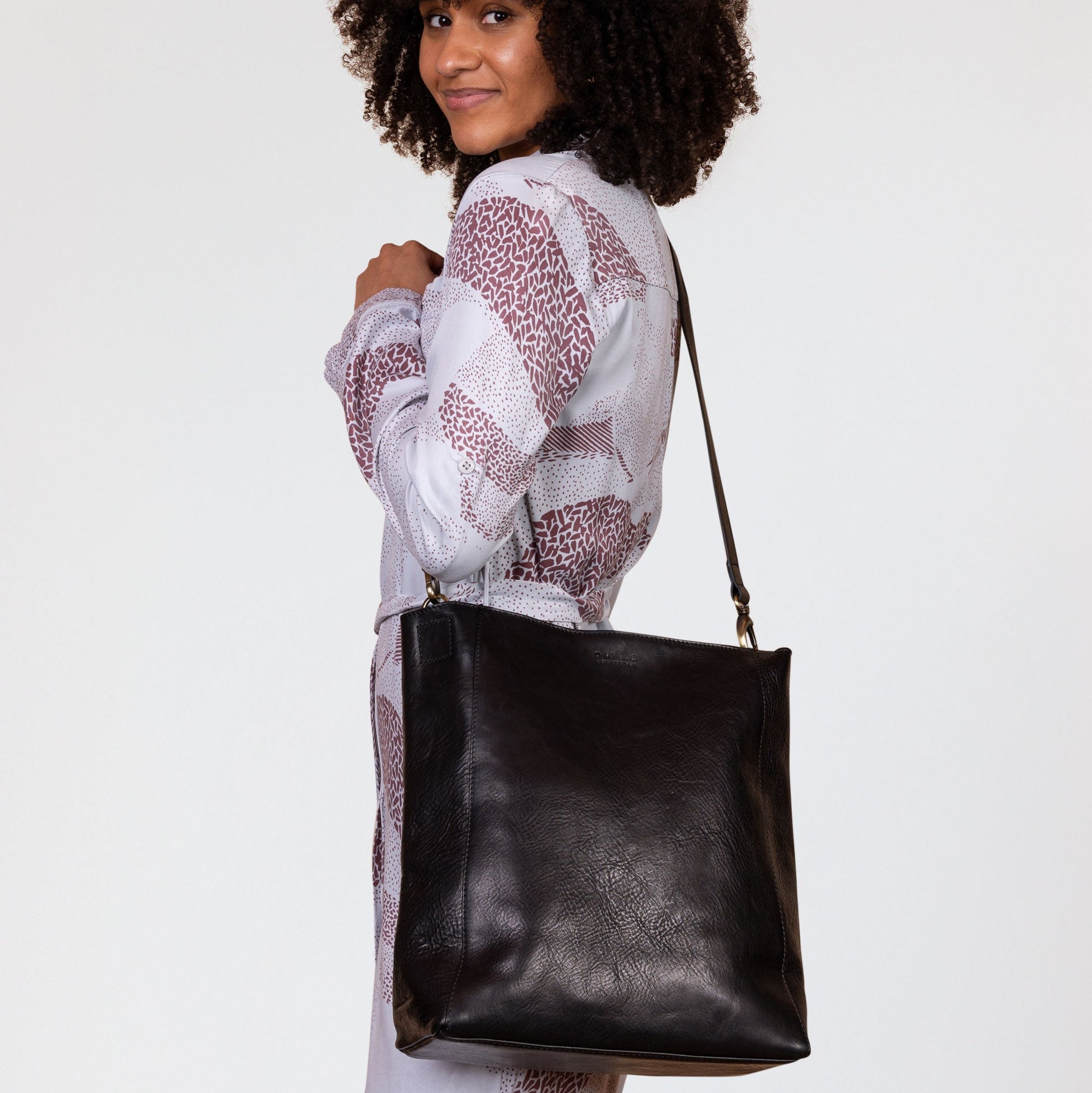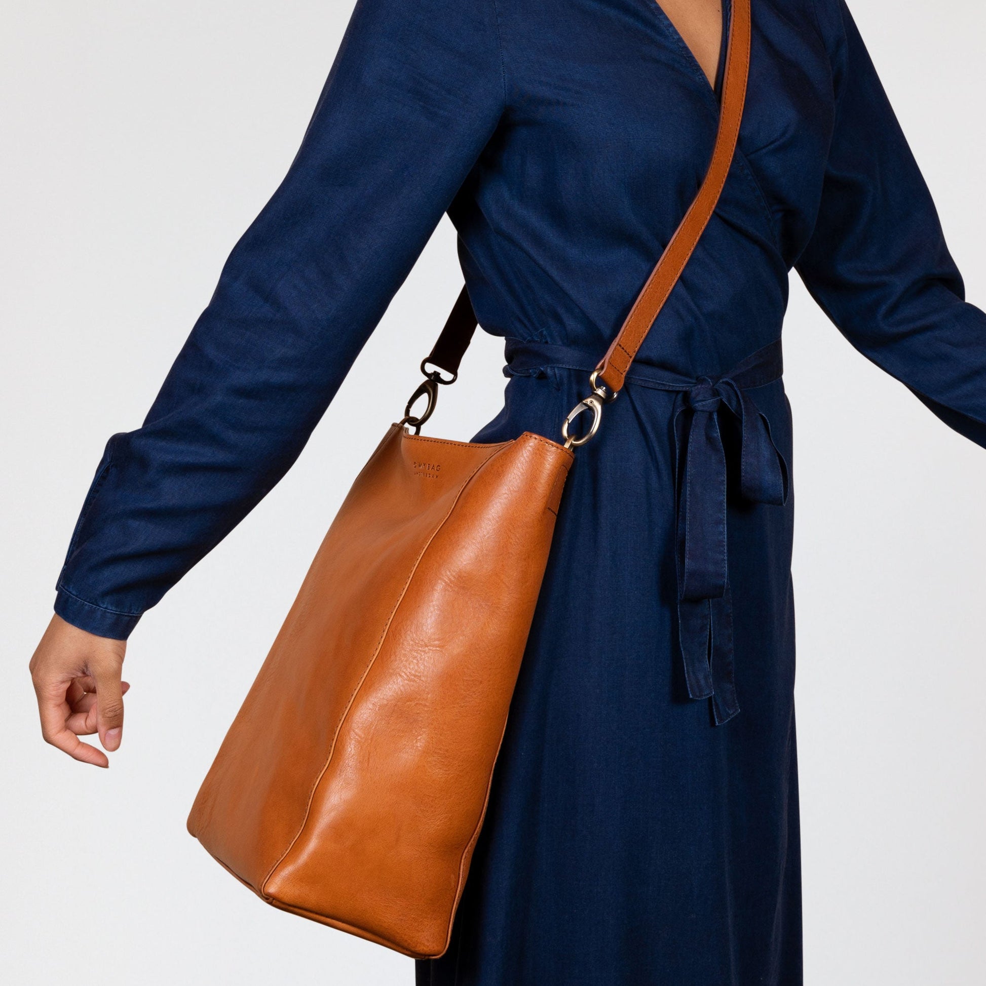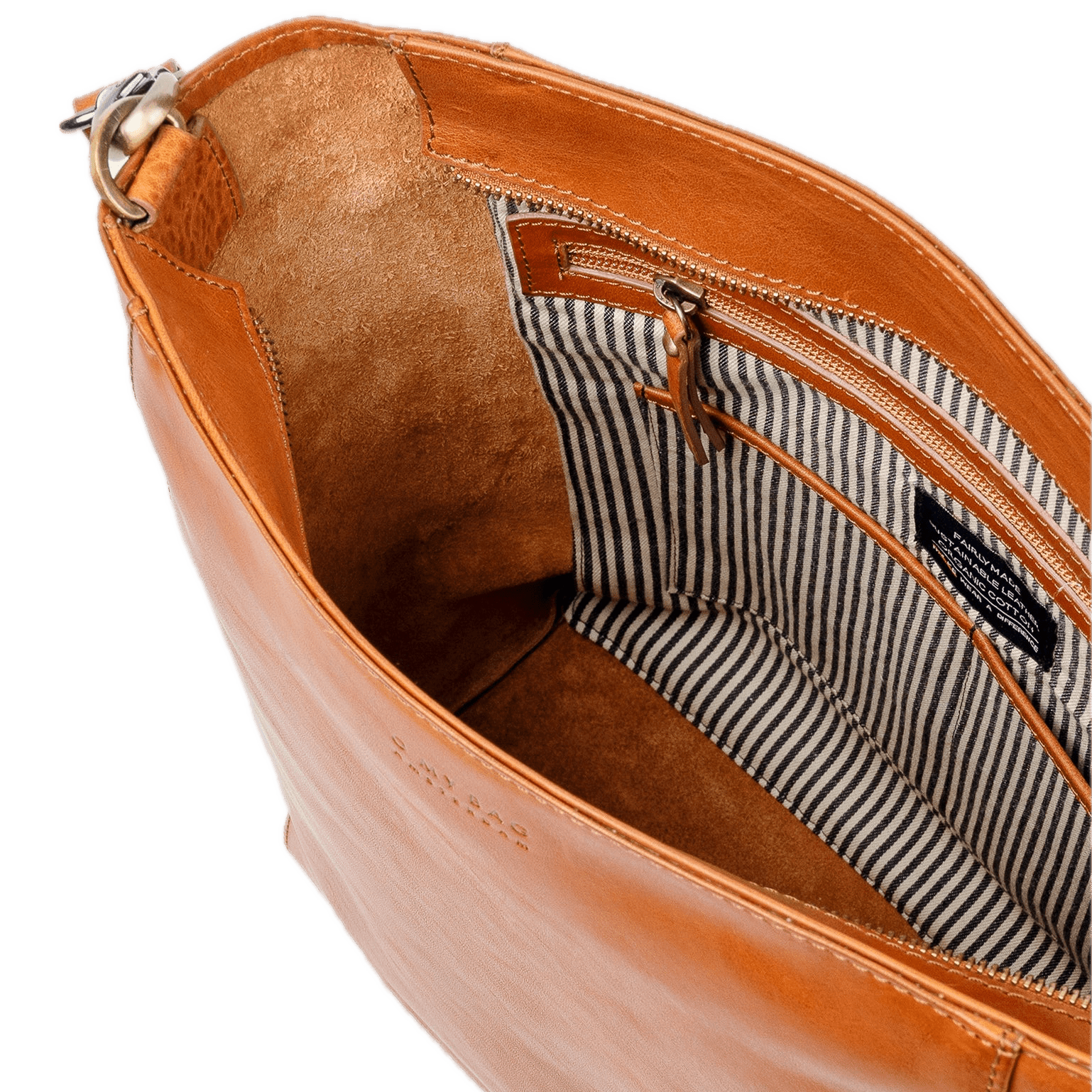 Gefertigt aus Stromboli Leder – einem weichen, geschmeidigen Leder mit natürlichem, entspanntem Look, das ohne schädliche Chemikalien gegerbt wird und keine synthetische Oberflächenversiegelung besitzt. Dieses butterweiche Leder gewinnt mit der Zeit an Charakter und entwickelt durch seine offene Struktur eine ganz individuelle Patina – jede Tasche wird mit der Nutzung einzigartiger.