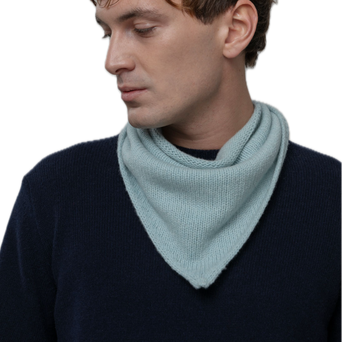 Der Schal, das Bandana oder 3-Eckstuch Masha wurde aus recycelter Kashmirwolle hergestellt. Es geht als Kopfbedeckung oder wärmt den Hals.