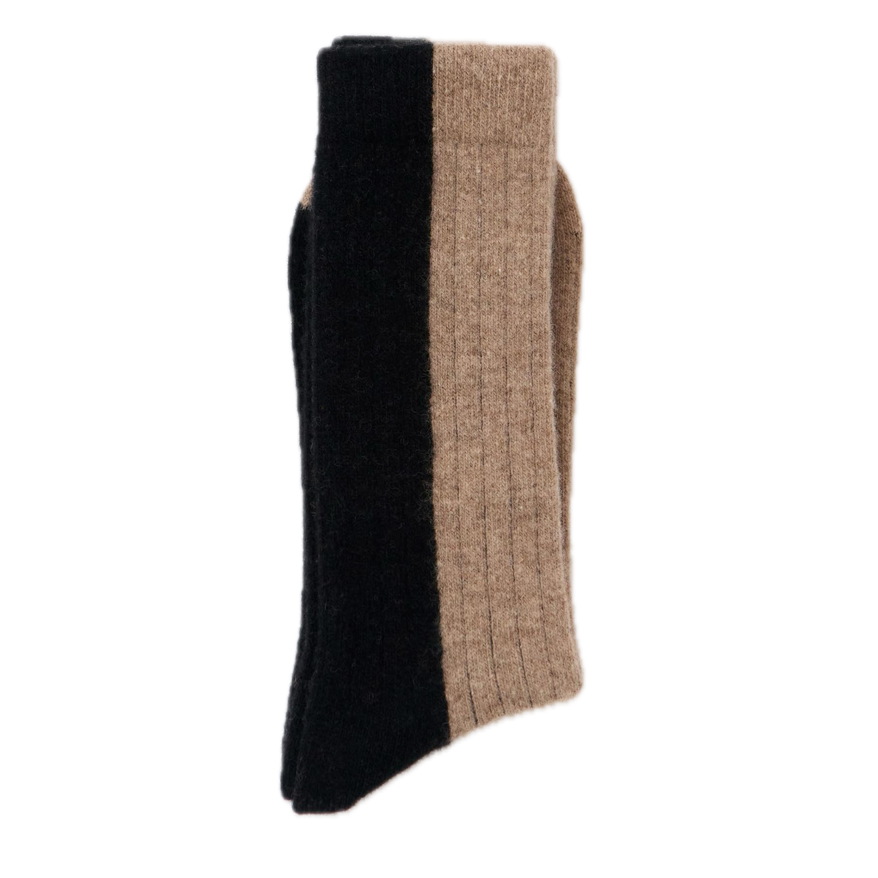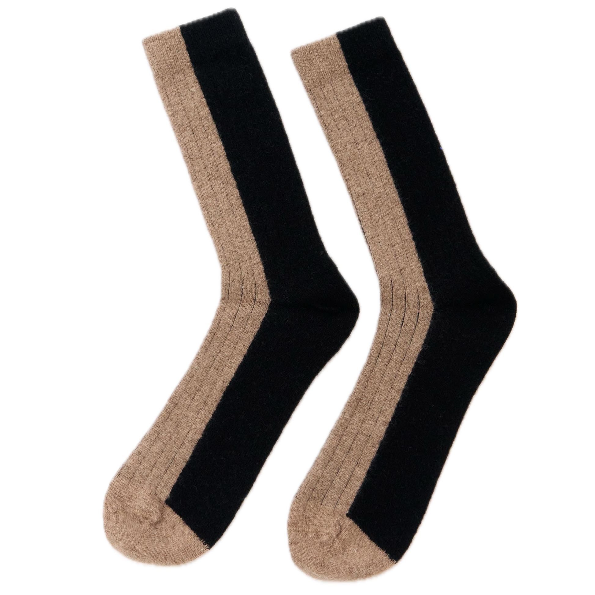 Bicolor Socken mit eingestrickten Streifen in schwerer Strickart, schön warm. Garn aus Spanien, gestrickt in Spanien.